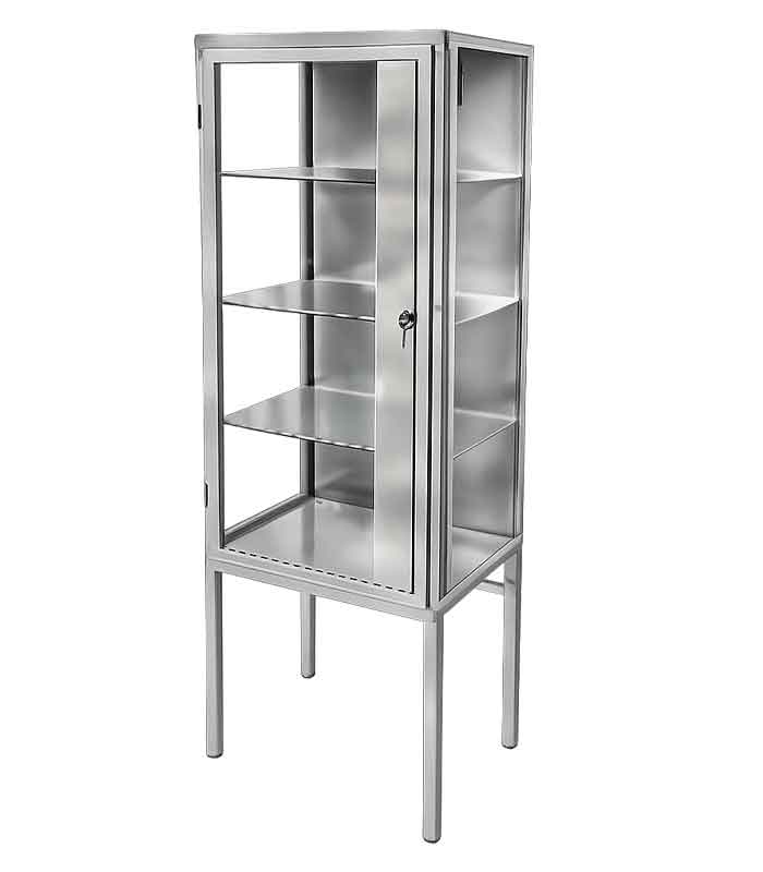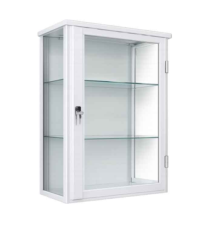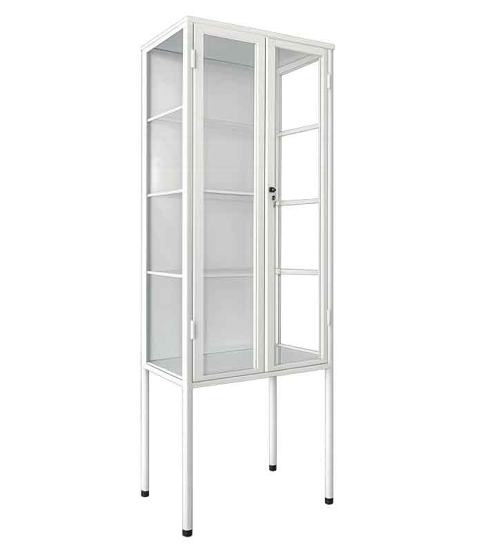 Ideal para exibir e armazenar produtos em ambientes comerciais ou clínicos. Confeccionado em chapa de aço carbono com prateleiras de vidro cristal de 3 mm, possui fechadura com chave tipo Yale para segurança. Acabamento em pintura eletrostática a pó com tratamento antiferrugem.